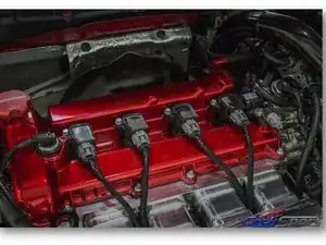 Найдите катушку/модуль зажигания — они выглядят как небольшие блоки, расположенные сверху двигателя. На одном конце каждой катушки будет провод с разъёмом. Откройте разъём, нажав на защёлку вниз или поддев её вверх.
