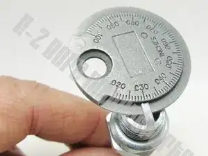 Когда все свечи выкручены, возьмите новые свечи и установите зазор в соответствии со спецификацией — в среднем большинство автомобилей используют зазор от 0.020 до 0.040 дюйма. *Уточните точный зазор для вашего автомобиля.* Для установки зазора вставьте нижнюю часть свечи в инструмент для регулировки зазора.