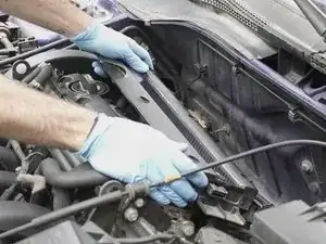 Откройте капот автомобиля с помощью рычага внизу слева на приборной панели, рядом с педалями.