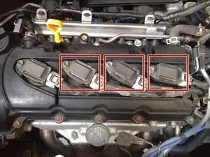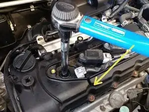 Отверните болт на 10 мм, удерживающий катушку зажигания.