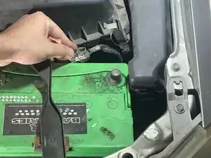 Перед работой с электрическими компонентами рекомендуется отключить 12-вольтовый аккумулятор, чтобы минимизировать риск поражения электрическим током. Для этого используйте трещотку 3/8 в сочетании с головкой на 10 мм.