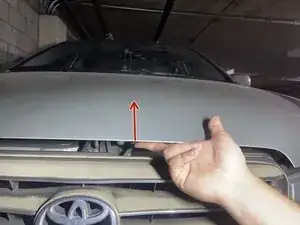 Поместите два пальца под выступ рычага и потяните вверх — это освободит капот, и Вы услышите щелчок.