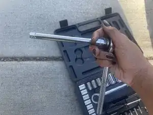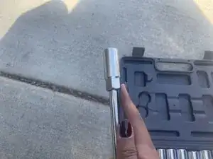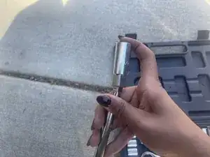 Снимите адаптер и торцевой ключ на 10 мм с воротка и замените их на удлинитель 6" и свечной торцевой ключ.