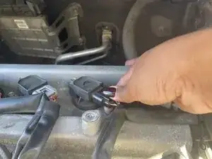 Отсоедините разъём катушки зажигания, нажав на конец зажима и вытащив его.