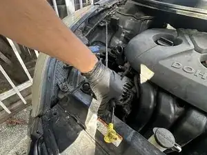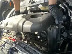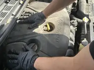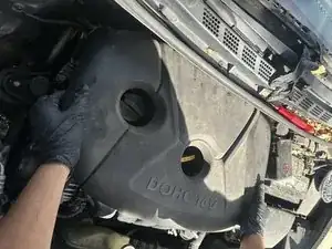 Снимите крышку двигателя, взявшись за неё руками с обеих сторон, и отложите её в сторону от рабочей зоны.