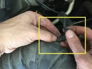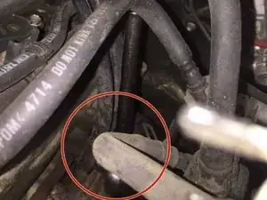 Снимите крепление жгута проводов с боковой стороны трубки вентиляции, потянув вверх за пластиковую клипсу. Отложите трубку в сторону.