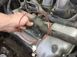 Частично снимите шесть разъёмов зажигания, нажав на защёлки разъёмов и отсоединив их от катушек зажигания. Разъёмы останутся прикреплёнными к жгуту проводов; отведите их в сторону, чтобы они не мешали.