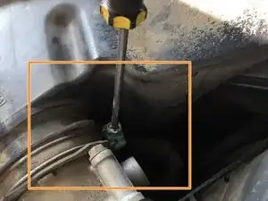 Ослабьте хомут, соединяющий трубку вентиляции с воздуховодом, отверткой Phillips #2.