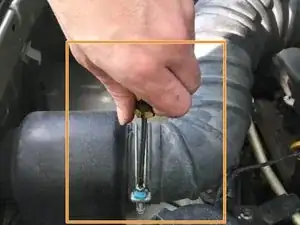 Используйте отвертку Phillips #2, чтобы ослабить задний хомут дефлектора, соединяющий его с корпусом дроссельной заслонки.