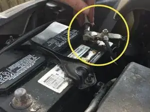 Избегайте прикосновения к металлическим частям автомобиля при снятии положительной клеммы, чтобы предотвратить искрение.