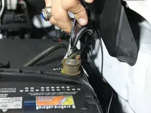 Ослабьте гайку размером 11 мм на зажиме, закрепляющем чёрный провод на отрицательном выводе аккумулятора.