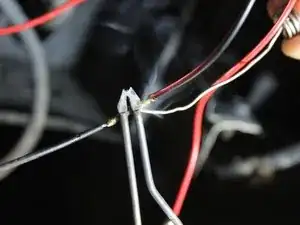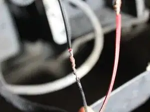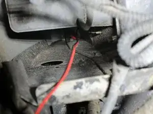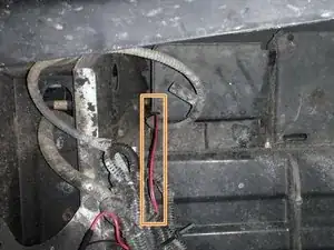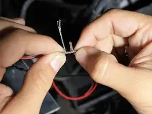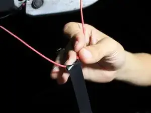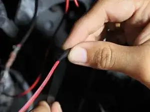 Отрежьте красный провод в промежутке между крылом и кузовом с помощью кусачек.