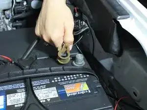 Подключите снова отрицательный вывод к аккумулятору.