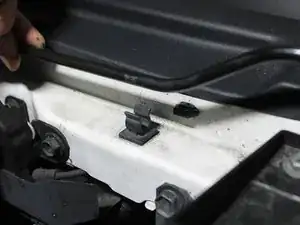 Вытяните опору и установите её в предназначенное отверстие в капоте.