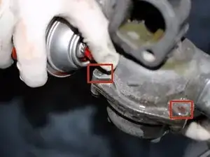 Перед ослаблением болтов, удерживающих крышку термостата на корпусе, распылите проникающую смазку на все три болта. Эти болты доступны с задней стороны и часто частично заржавлены. Попробуйте распылить смазку как с задней, так и с передней стороны корпуса в местах расположения болтов.