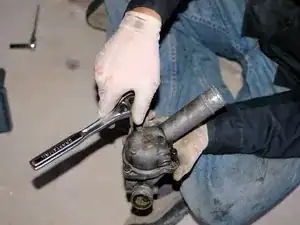 После того как проникающая смазка впиталась в течение нескольких минут, используйте головку на 10 мм и трещотку, чтобы ослабить три болта, удерживающие крышку на корпусе термостата. При повторной установке затягивайте болты моментом 10 Нм / 7 фунт‑фут.