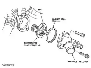 Выньте старый термостат из двигателя и вставьте новый. На одном конце термостата находится большая пружина. Пружина располагается внутри двигателя.