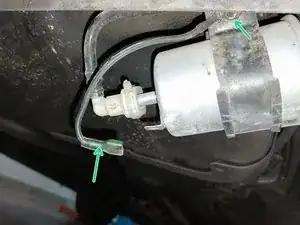 Пластиковые фиксаторы топливных шлангов, часто поставляемые вместе с заменяемым фильтром для использования на других совместимых автомобилях, не подходят для этой модели и должны быть выброшены заранее.