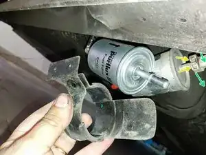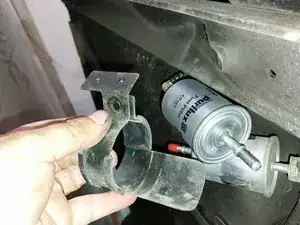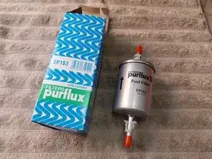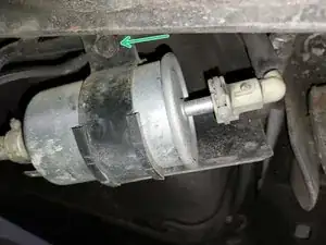 Когда новый фильтр установлен и закреплён в хомуте, запустите двигатель перед окончательной затяжкой двух болтов крепления к шасси. Это позволит топливу поступить к двигателю и даст возможность проверить утечки.