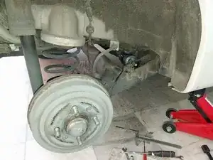 Чтобы получить доступ и работать с удобством, необходимо поднять автомобиль и снять правое заднее колесо.