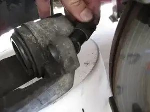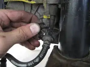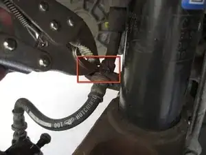 Удалите зажим, который держит тормозную линию на стойке, с помощью плоскогубцев.