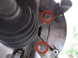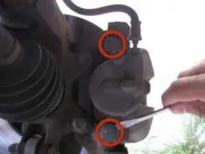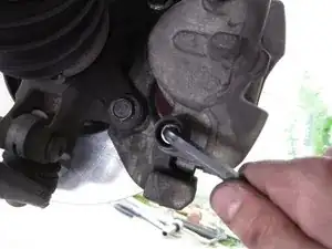 Используйте шестигранный ключ на 7 мм, чтобы снять два направляющих болта суппорта.