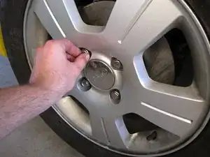 Используйте ключ для колес, чтобы полностью снять четыре гайки.