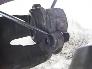 Используйте отвертку с плоским лезвием, чтобы толкнуть втулку через отверстие в суппорте.