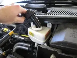 Резервуар с тормозной жидкостью расположен ближе к задней части моторного отсека.