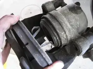 Колодка удерживается на месте тремя металлическими зажимами. Может потребоваться немного силы и покачивания, чтобы освободить колодку.