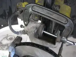 Сожмите поршень суппорта с помощью С-образного зажима.