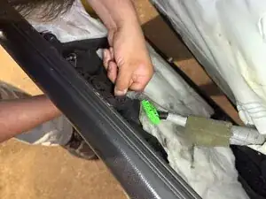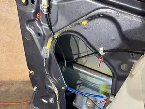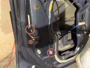 На шаге №1 найдите все болты, чтобы снять карту двери и получить доступ к тросу.