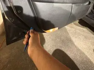 На шаге №2 начните отщёлкивать панель двери, используя набор инструментов для съёма обивки. Совет: начинайте снизу.