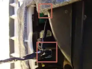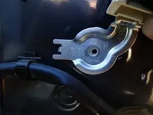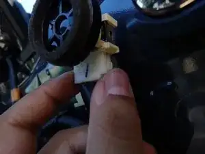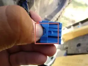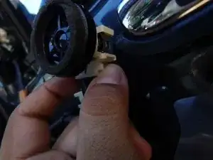 Чтобы снять твитер, отсоедините провод так же, как в предыдущих шагах. Держите защёлку сбоку и тяните провод.