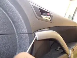 Перейдите к правому нижнему углу обшивки двери и подденьте этот участок, пока не услышите щелчок.