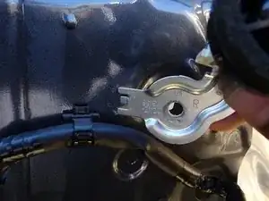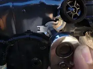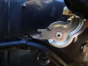 Используйте трещотку с головкой на 10 мм, чтобы открутить гайку.