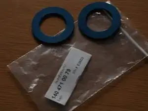 Как отмечено во введении, существует два типа маслозаливных крышек. На одном из автомобилей, использованных при создании этого руководства, установлена старая металлическая крышка. Поэтому будут использованы два уплотнения от крышки бензобака: одно для бензобака и одно для маслозаливной горловины. Они показаны на фото.