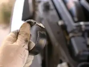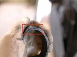 На этом автомобиле старое уплотнение было настолько старым и хрупким, что не сгибалось для снятия. Оно было разломано пополам с помощью тонкогубцев.