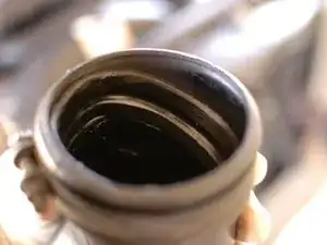 Найдите турбинное колено — прямо перед корпусом воздушного фильтра, прикреплённое к его нижнему отверстию.