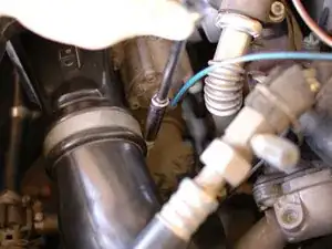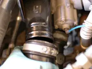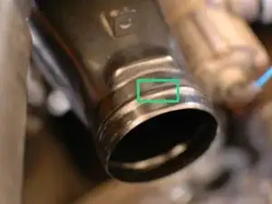 Используйте головку на 10 мм и трещоточный ключ, чтобы ослабить хомут на верхней части турбинного колена.