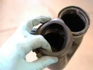 Пора снова установить колено. Оно должно просто надеваться. Может помочь оставить немного верхнего уплотнения выступающим из конца верхнего колена при надевании.