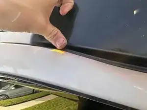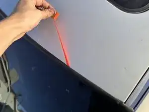 Снимите оранжевую бумагу и прижмите уплотнение, чтобы клеевая лента приклеилась к кузову.