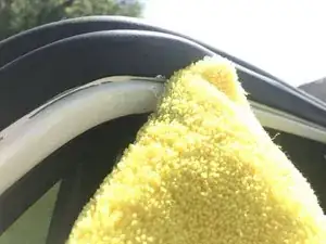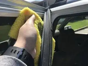 Распылите очиститель тормозов на полотенце и протрите заднюю сторону уплотнителя (ту сторону, которая касается кузова).