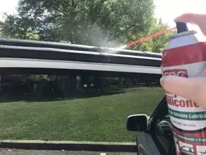 После полного отверждения клея распылите силиконовый спрей непосредственно в зазор между дверью и выступающим краем уплотнителя и нанесите его прямо на уплотнитель.