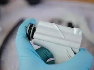 Снимите два винта #0, удерживающие заднюю крышку сзади насоса; она расположена между задней частью насоса и ручкой.