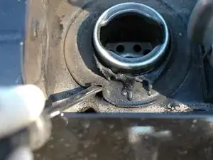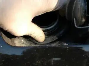 Снимите уплотнитель с горловины топливного бака. Вот как это будет выглядеть после снятия уплотнителя.
