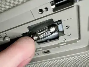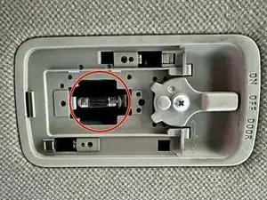 Чтобы вернуть прозрачную крышку на место, вставьте сторону с большим шарниром в соответствующий проём шарнира.