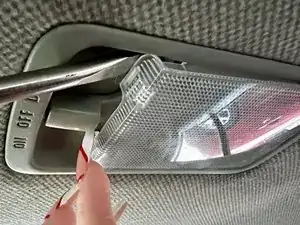 Снимите пластиковую крышку внутреннего плафона. Можно использовать инструмент для поддевания или руки.
