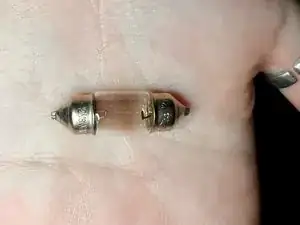 Вставьте новую лампочку вместо перегоревшей: сначала введите одну сторону в отверстие, затем нажмите вверх мимо защёлки, чтобы зафиксировать её внутри.