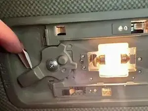 Отожмите защёлку от лампочки, чтобы освободить её.